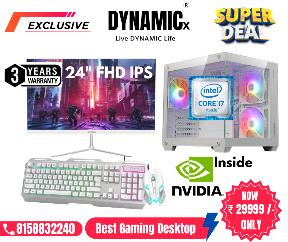 INTEL CORE i7 6700 PROCESSOR  16GB DDR4 3200MHZ RAM ( 3 Y WARRANTY ) 512GB SSD ( 3 Y WARRANTY ) 2GB NVIDIA DADICATED GRAPHICS  INTEX 24" FHD IPS LED MONITOR GLASS RGB CHASIS RGB KEYBOARD MOUSE COMBO 800WATT SMPS...View more