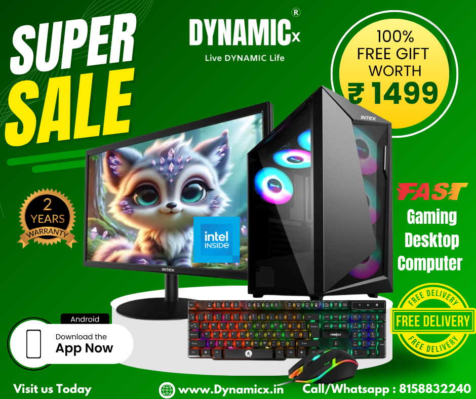 ( Intex Budget Gaming Desktop Pc ) Intel Core i3 3220 - 8GB RAM - 128GB SSD - 19" MONITOR - RGB CHASIS K & MOUSE COMBO - WIN 11 PRO 64BIT